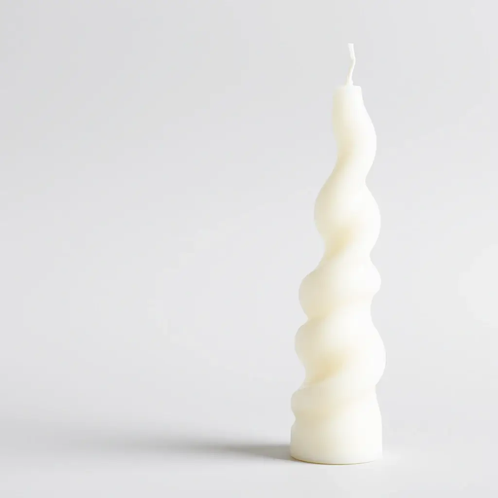 This handcrafted spiral candle features a sleek white finish, showcasing a modern and minimalist design. Its sculptural spiral form adds an artistic touch to any space, making it perfect for home decor or gifting. Made from high-quality wax, it burns evenly and beautifully. Ideal for creating a calming ambiance in contemporary interiors.